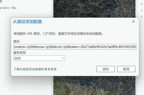 打开ArcGIS Pro,点击“数据”选项卡,选择“从路径添加数据”。在弹出窗口中输入上述服务地址。
