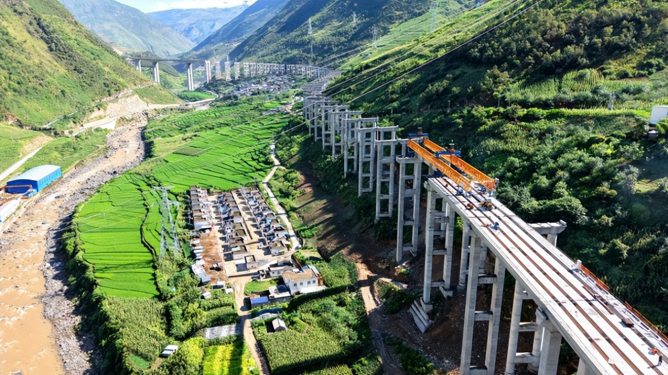 架梁过程中,项目团队积极应用架桥机自平衡技术,借助多级伸缩液压油缸实时调整支腿长度,将机身水平偏差精准控制在±2mm以内,确保高空峡谷风场环境下整机稳定。架梁班组在龙门吊配置变频辅助及卷扬机双控装置,提升架设精度与施工效率,以日均架设5片T梁的施工效率,安全高效完成了全部架梁任务。