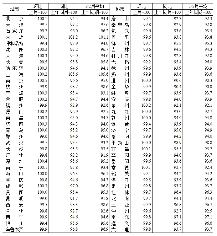 2025年2月70个大中城市新建商品住宅销售价格指数