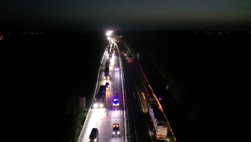 2023年9月15日19时许,陕西交控绥定分公司靖边管理所辖区发生一起单方交通事故,事故车辆侧翻导致辖区交通受阻,靖边安全路产中队接到报案后立即赶往事故现场,到达现场后,巡查人员对现场进行警戒并摆放安全警示标志。因事故车辆侧翻,后车无法通行,导致后方车辆滞留。