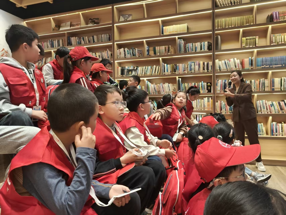 《国企》杂志融媒浙江11月8日讯(党建好故事 江 风 摄影 天 明)“我们是秋瑾小学的光明小记者!”当头戴小红帽、身穿背上有醒目的“光明小记者”字样的红马夹、胸前佩戴小记者徽章和小记者证的小记者个个兴高采烈进入城市书房阶梯空间,有的翻着《光明少年》杂志,有的在采访本上边记边问,好一派只争朝夕新气象。原来,今天正是秋瑾诞辰150周年的日子,也是第26个中国记者节。下午由光明日报出版社指导、中共绍兴市柯桥区福全街道工作委员会主办、柯桥区秋瑾小学、中国党建画院党建好故事创作研究中心承办、绍兴市秋瑾研究会协办、光明少年杂志社支持举办的纪念秋瑾诞辰150周年“共建融媒党建圆桌会”走进秋瑾故里——光明小记者绍兴市柯桥区秋瑾小学站启动仪式在福全街道半江书屋隆重举行。