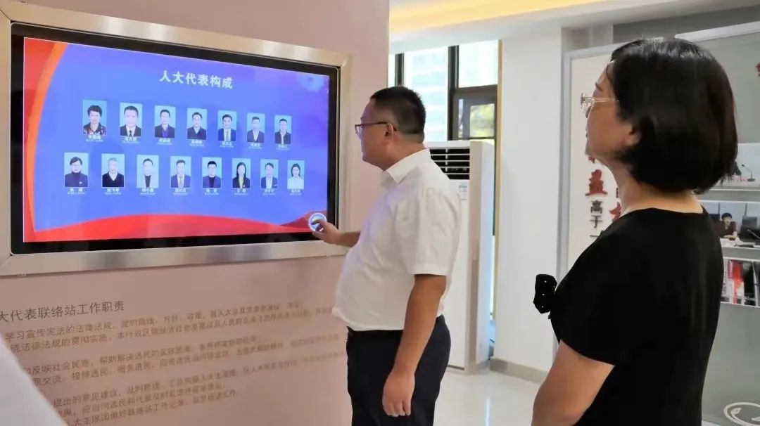 李国梅首先参观了盈丰街道美哉人大代表联络站的阵地建设,了解了联络站的规章制度、人员配备、工作流程等情况。