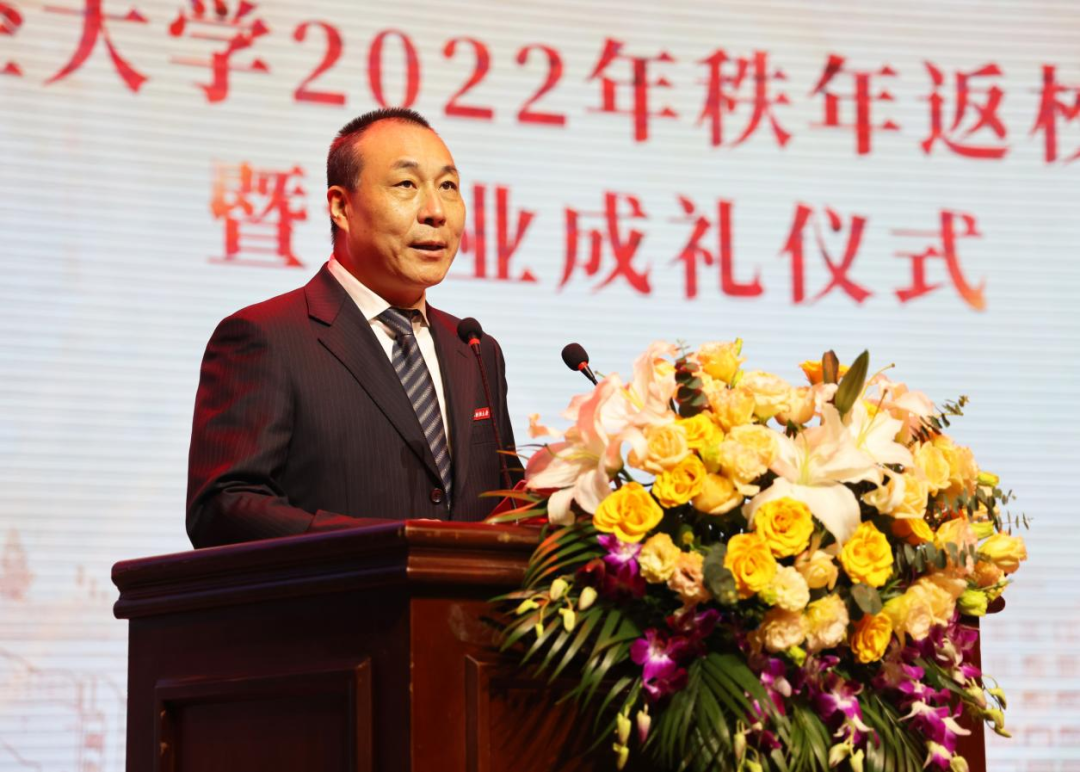 校党委书记李金昌在致辞中代表学校对返校校友表示热烈欢迎和亲切问候。他指出,48年硕果辉煌,作为一所伴随着改革开放快速成长的年轻高校,浙江财经大学在上级部门和社会各界的关心帮助下,在钱塘区的大力支持下,在全体“浙财人”的共同努力下,学校建设发展取得了积极成效,如今已构建了学士、硕士、博士完整的人才培养体系,成为财经类高层次人才培养和经济社会研究的重要基地,被誉为浙江“财税干部的黄埔军校、会计师的摇篮、金融家的沃土、企业家的殿堂”。当前,学校正在深入学习宣传贯彻党的二十大精神,全面落实“十四五”发展规划,向着建设特色鲜明的一流财经大学奋勇前进。他表示,校友是母校最宝贵的资源和财富,正是一代又一代的校友成就了浙财的精神、特质和赞誉。一直以来,学校高度重视校友工作,深入实施“校友名校”战略,已建立144个校友会,已完成了“网、刊、号”多维度的校友媒体矩阵建设,校友工作品牌不断彰显。他呼吁广大校友能够继续支持母校,与学校携手并进、风雨同舟,一如既往参与支持母校建设发展,为早日实现建设一流财经大学目标,为奋力推进“两个先行”贡献更多力量!母校也将努力搭建各种平台,服务支持校友发展,积极打造校友和母校命运共同体。