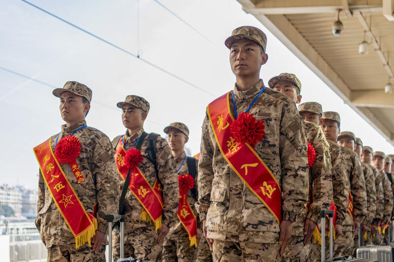 3月17日,浙江省金华市铁路金华站,入伍新兵和亲人告别,奔赴部队军营。