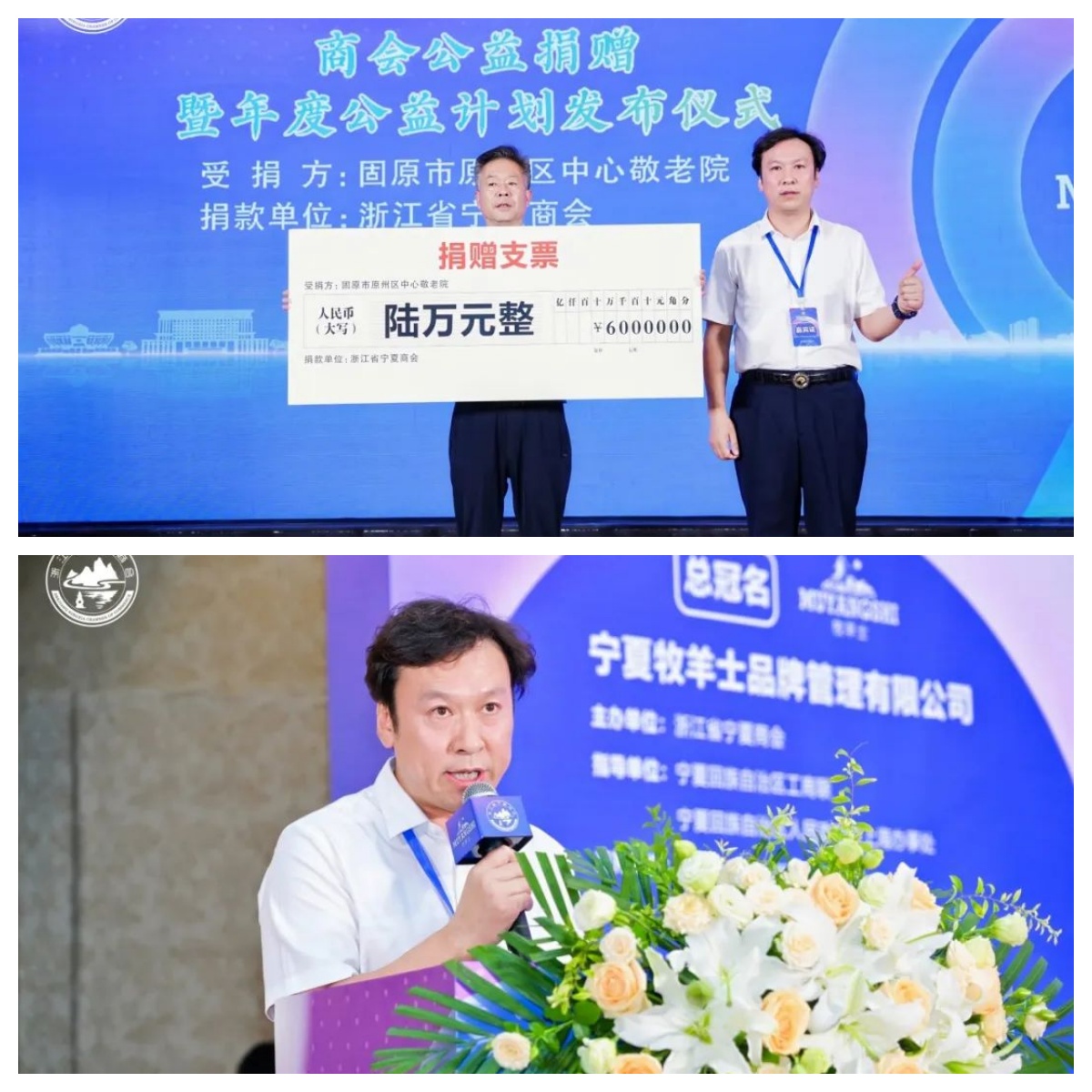 李存英执行会长简要地回顾了商会自成立以来所做的慈善公益事迹,并呼吁更多的企业和社会各界人士能加入到公益事业中来,共同传递爱心,共同构建一个和谐、美好的社会。最后也代表商会向固原市原州区中心敬老院捐款人民币6万元(其中5万元为宁波沙马家居进出口有限公司CEO王佳捐赠)。固原市原州区中心敬老院院长张俊上台代表院方接受捐款。