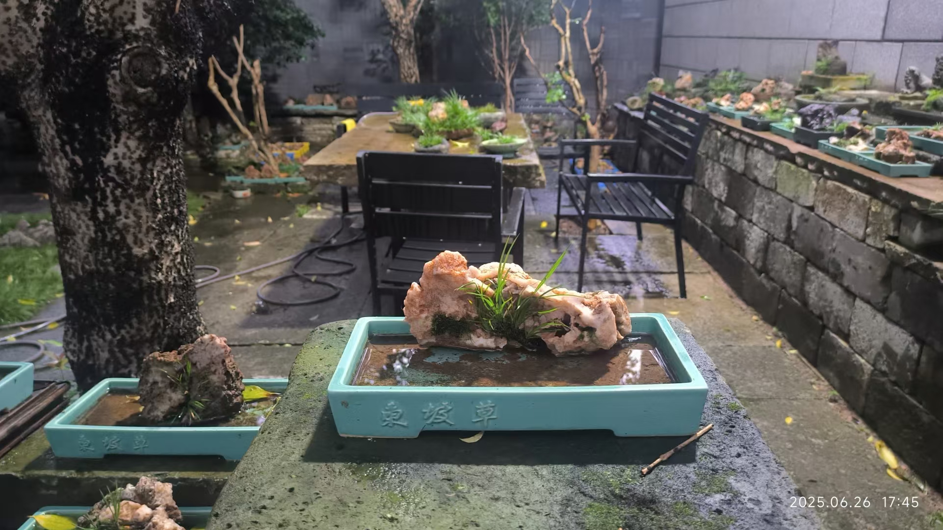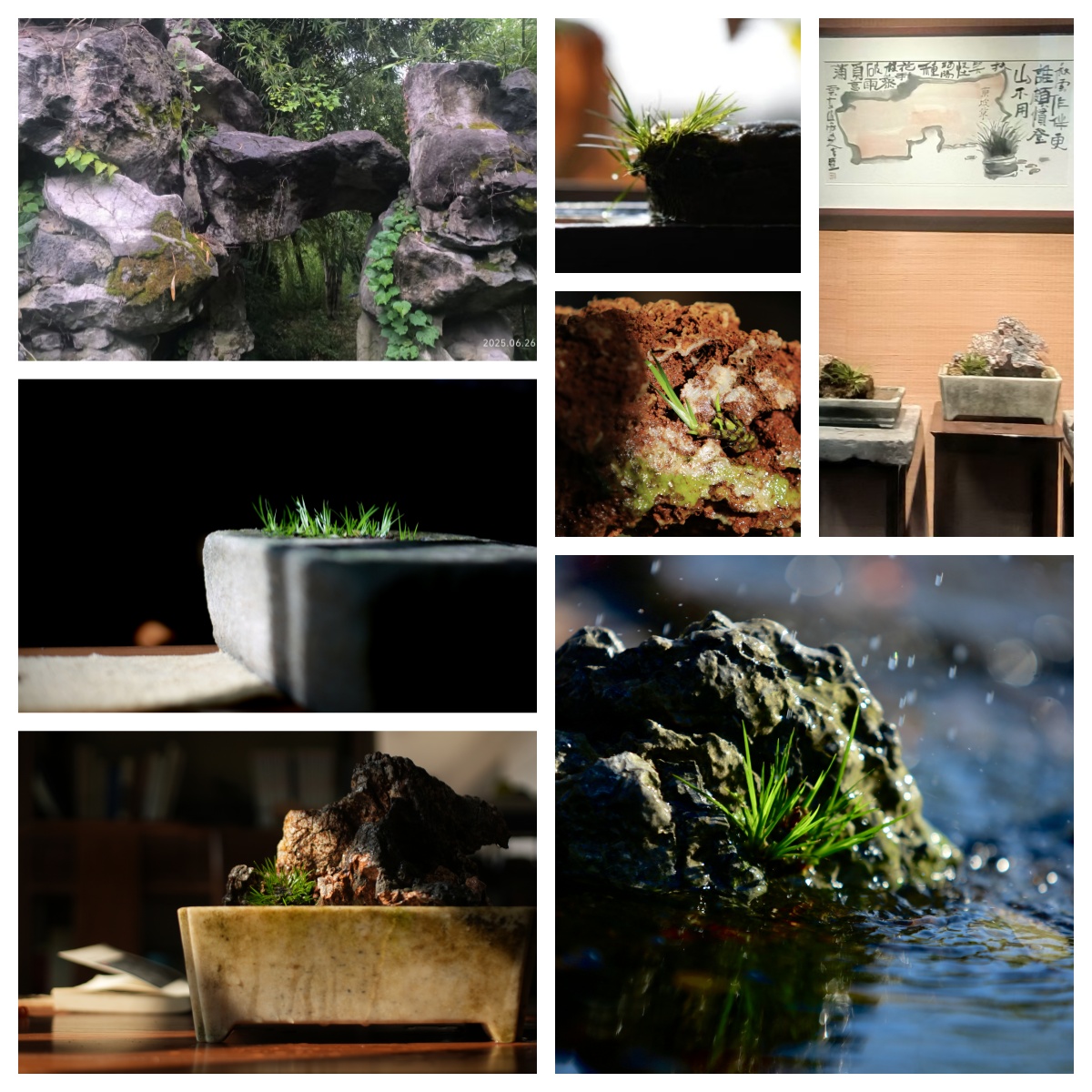 走进草堂,只见墙上挂着绘有菖蒲与东坡的画像,还有各类以菖蒲为主题的小品画,每一幅画都仿佛在诉说着菖蒲与文人墨客之间的故事。这里案几上、地面上,一盆盆菖蒲生长在奇岩怪石之上,宛如一个个灵动的小生命,在这独特的环境中展现着别样的风姿。