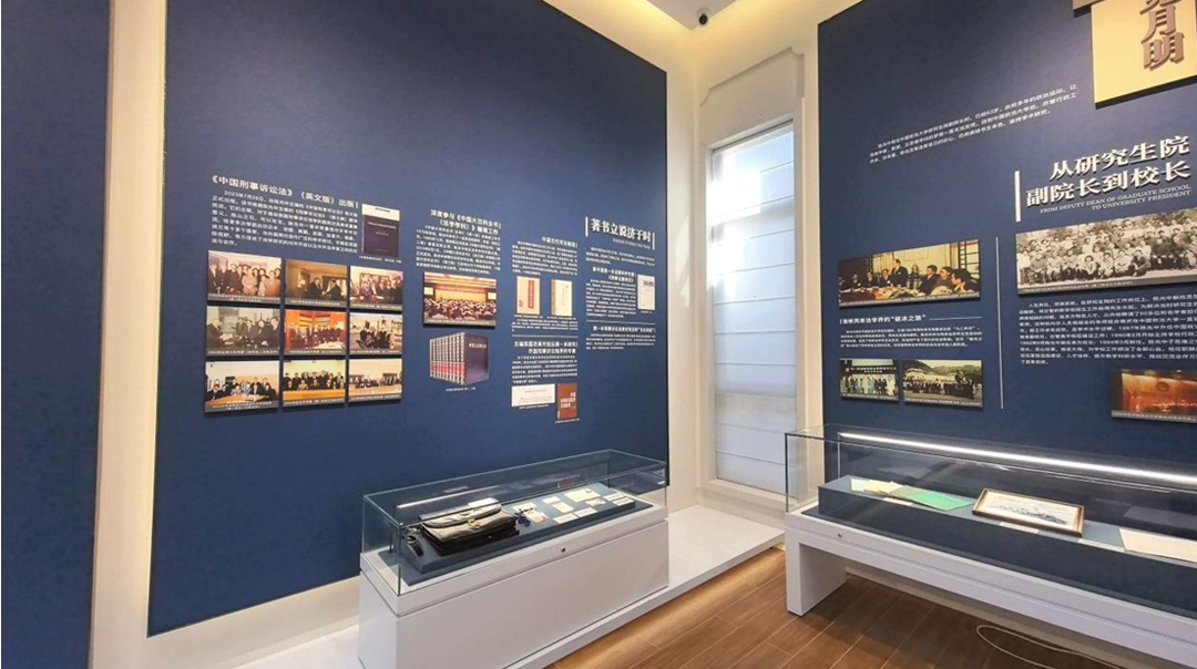 陈光中法学馆分瓯江之子蓄志为学、书剑不老学以致用、桃李天下薪火相传三个展厅,展厅设置形象墙、个人经历、AI互动电子屏等主题,通过文献陈列、场景复原、互动体验相结合等方式,集中展出陈光中先生著作手稿、立法建议原件、“聂树斌案”“呼格吉勒图案”等代表性重大案件珍贵史料文物,系统展现其学术生涯与法治贡献。