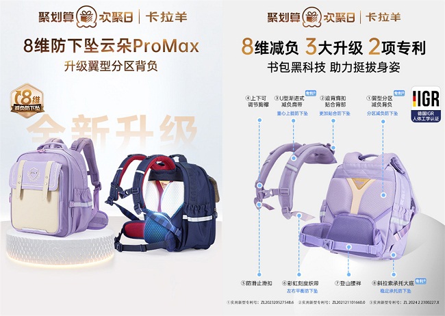 近日,卡拉羊匠心打造的新一代「云朵书包 Pro Max」8 维减负书包,闪耀登陆天猫欢聚日!这款获2025德国IGR人体工学认证的书包,追背肩扣与渐进式肩带设计提拉不下坠,翼型分区背负减负护脊又舒适,让孩子上学更轻松,家长更安心。