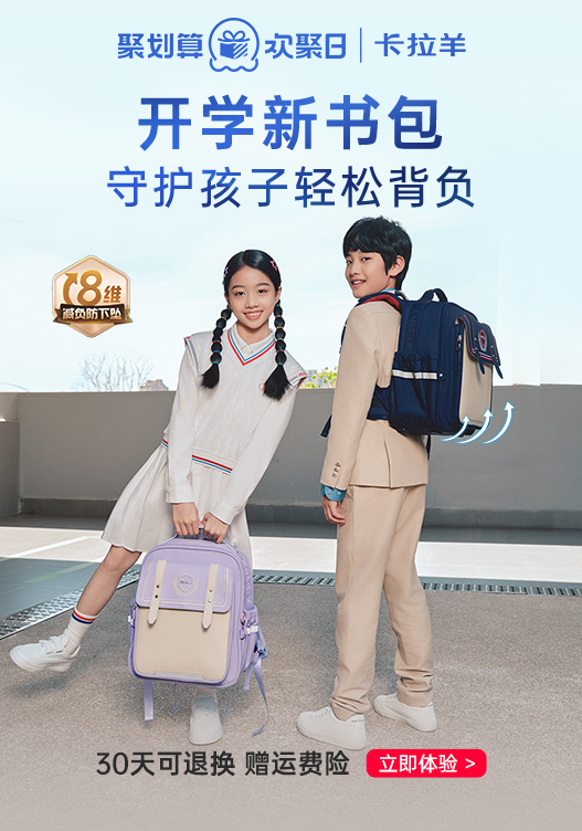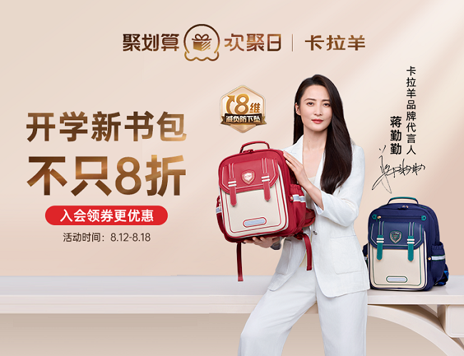 新学期,新气象,让国民女神蒋勤勤推荐的卡拉羊书包,陪孩子自信开启新学期的精彩旅程吧!现在上天猫卡拉羊书包旗舰店,8月12日-8月18日欢聚日活动期间,新品首发抢补习袋额外加赠,0元入会福利重磅升级,还能参与店铺抽免单、大转盘、积分兑等多样玩法等你来解锁~~