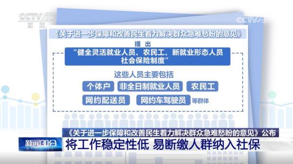 因此,《意见》提出“健全灵活就业人员、农民工、新就业形态人员社会保险制度”“全面取消在就业地参加社会保险的户籍限制”,有利于将更多人纳入社会保障覆盖范围,让他们享受到政策温暖。