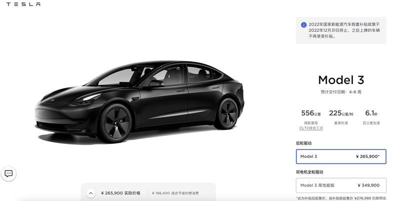 此次在中国大陆地区,特斯拉Model 3车型调整后的起售价为26.59万元人;特斯拉Model Y车型调整后的起售价为28.89万元。整体降价幅度从1.4万元-3.7万元不等。