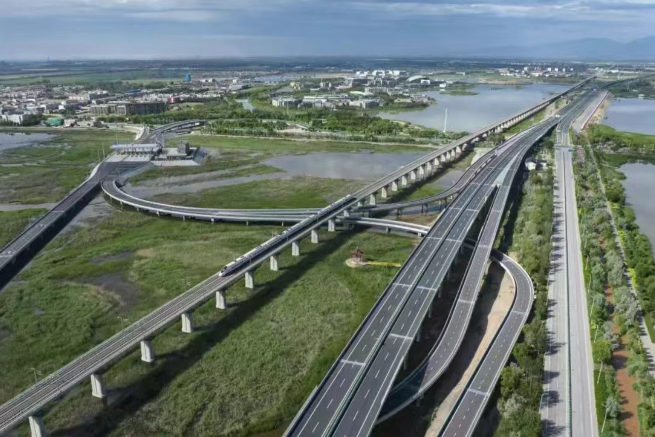 2022年开工建设以来,项目坚持生态优先,与包银高铁共用星海湖北域和东域生态红线范围内的综合交通廊道,有效避让星海湖国家湿地公园,避免对湿地生态环境造成破坏。积极探索固废综合利用新路径,通过粉煤灰和煤矸石路基资源化利用、全粒度矿渣集料路面梯级利用等关键技术,共利用工业固废超过300万吨,先后完成30余项微创新技术,荣获16项国家级和自治区级微创新奖。