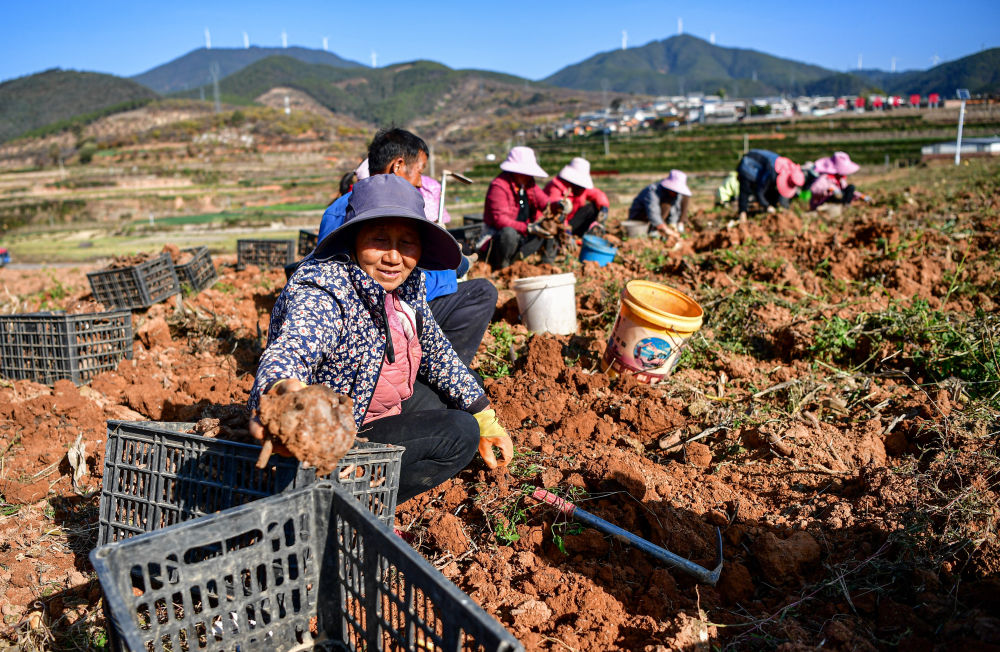 在四川攀枝花市仁和区板栗现代林业园区,农户在采收魔芋(2024年12月10日摄)。新华社记者 张超群 摄