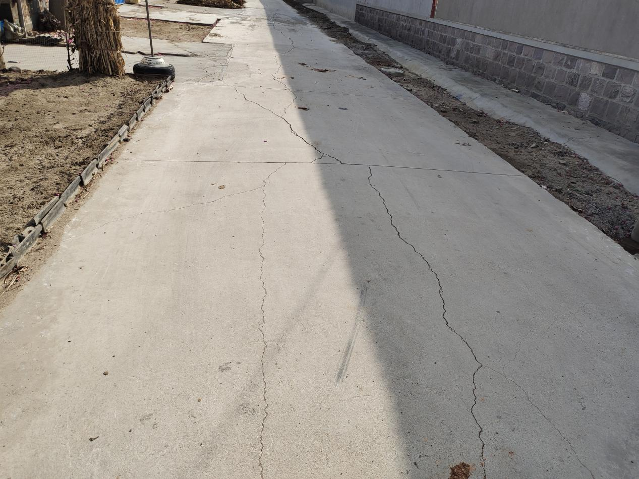 记者走访多个村庄发现,大部分水泥硬化路面均出现严重开裂,其有些裂纹可伸进成人的食指,令人不忍直视。