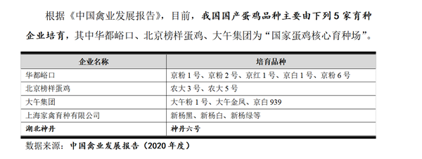 据了解,蛋鸡育种行业具有高技术、高投入、回报期长的高门槛特征。任何成熟的畜禽商业品种,由于生物的特性,都需要经过多个世代的选育和持续的优化过程,期间的饲养费用、资产折旧、科研投入、高技术人员薪酬等成本都远远高于商品代养殖;而且品种培育成功后,其产业化的过程需要建设众多的良种扩繁基地,以形成覆盖市场的供应网络,更需要高额资金投入,对育种公司资金实力的要求很高,这就造成了我国的蛋鸡种业长期以来大多以引繁推模式的引种为主,从事育繁推的自主技术企业屈指可数。据北农大招股书披露,目前国家级蛋鸡核心育种场仅有五家,其中北京榜样蛋鸡为北农大旗下全资子公司。