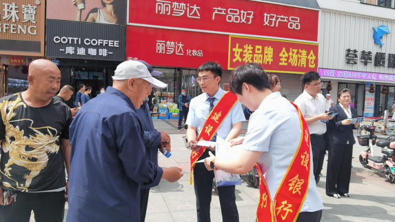 (建设银行哈尔滨哈龙支行工作人员走上街头开展反诈知识宣传)