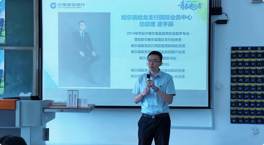 “2014年我和大家一样,坐在校园的宣讲会现场,当时打动我的,是建行‘专业与温度并存’的企业特质——既有国有大行的稳健格局,又始终把员工成长放在重要位置。”在哈尔滨金融学院的宣讲会上,建设银行黑龙江省分行员工唐宇辰作为校友宣讲人,向学弟学妹们分享了自己从校园到职场的成长经历,瞬间拉近了与学生的距离。