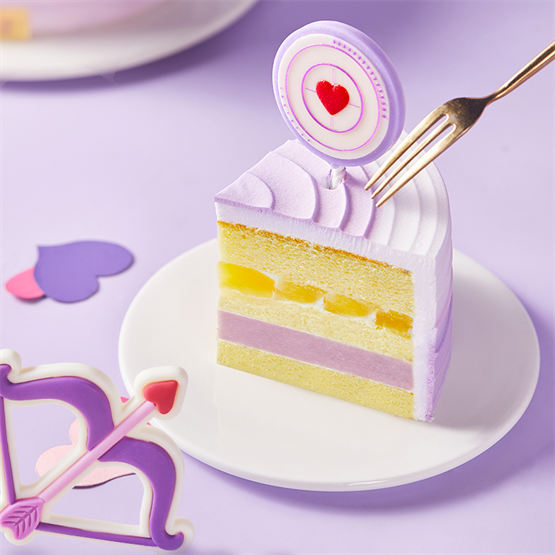 感恩,是这一节日最核心的情感内核——对家人的陪伴、朋友的支持、生命中所有美好的相遇表达谢意。“正中你心”蛋糕正是为承载这份情感而生。外观以梦幻紫与纯净白为主调,紫色象征真挚与浪漫,白色代表纯粹与温暖,两者交融,营造出优雅而温馨的视觉氛围。元祖更以螺旋状奶油线条勾勒出蛋糕轮廓,不仅赋予其层次与高级感,更似心弦轻颤的轨迹,暗喻着一份期盼被读懂、被回应的细腻心意。