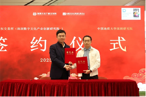 活动现场,两大核心项目同步发布,深圳文化产权交易所深圳数字文化产业创新研究院与中国地质大学深圳研究院签署合作协议,双方将联合开展课题研究及孵化项目,引导与促进数字文化产业发展。