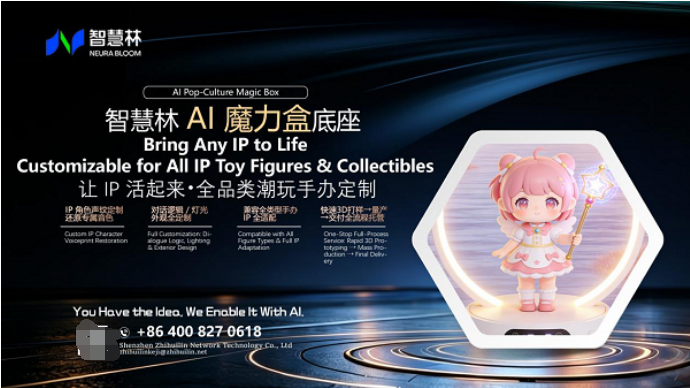 “You have the idea,We enable it with AI”,凭借着强大的技术实力和完整产业链,本次展会智慧林还同步展示多款AI创新产品:创新研发智能情感交互潮玩AI财神不倒翁,支持多模态感知交互与多款IP外壳定制;AI音乐创作app及获得合作伙伴官方授权的迪士尼、三丽鸥IP音响耳机,可一键生成专属旋律;AI+魔力盒实现IP与AI、硬件深度融合,让静态手办升级为智能陪伴终端;智能仿真动物背包则为儿童及年轻群体提供萌趣交互体验,全面展现公司AI场景化应用实力。