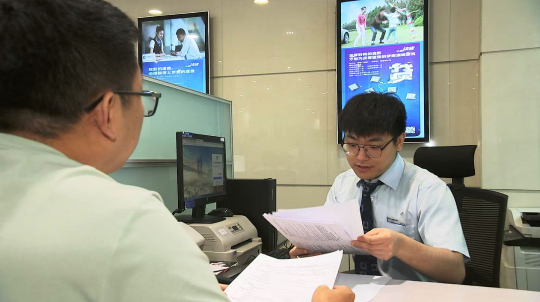 (建设银行工作人员向客户介绍网签资金监管业务流程)