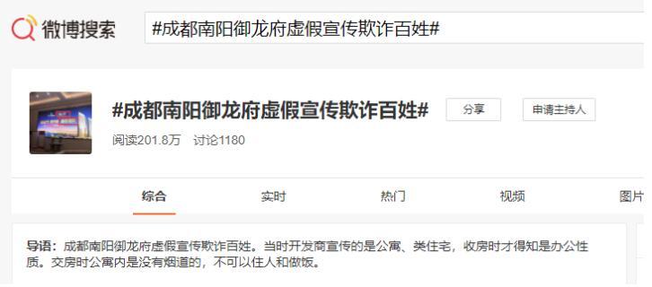 微博话题:成都南阳御龙府虚假宣传欺诈百姓