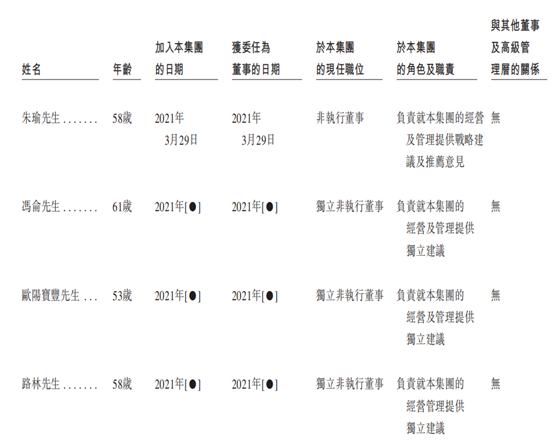 其中,朱瑜曾担任旭辉控股副总裁、旭辉永升服务执行董事;欧阳宝丰曾任宝龙地产首席财务官、复星地产副总裁等,现仍担任中国天然气集团、弘阳地产、中梁控股、新力控股等上市公司的独立非执行董事。