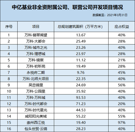 然而,中亿基业30个项目中,仅有14个项目由全资附属公司开发,其中6个项目已出售建筑面积超过90%;16个项目由非全资附属公司及联营公司开发,占比过半。