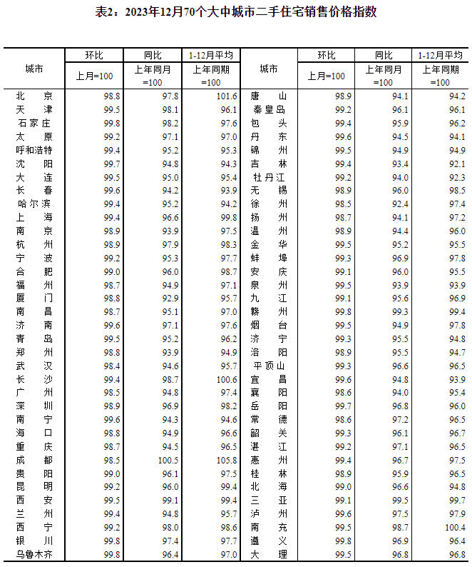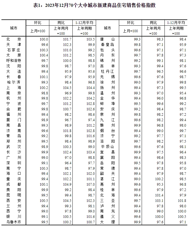 国家统计局17日公布2023年12月份70个大中城市商品住宅销售价格变动情况,70个大中城市中,各线城市商品住宅销售价格环比下降、同比有涨有降。国家统计局城市司高级统计师沈赟对数据作出解读。