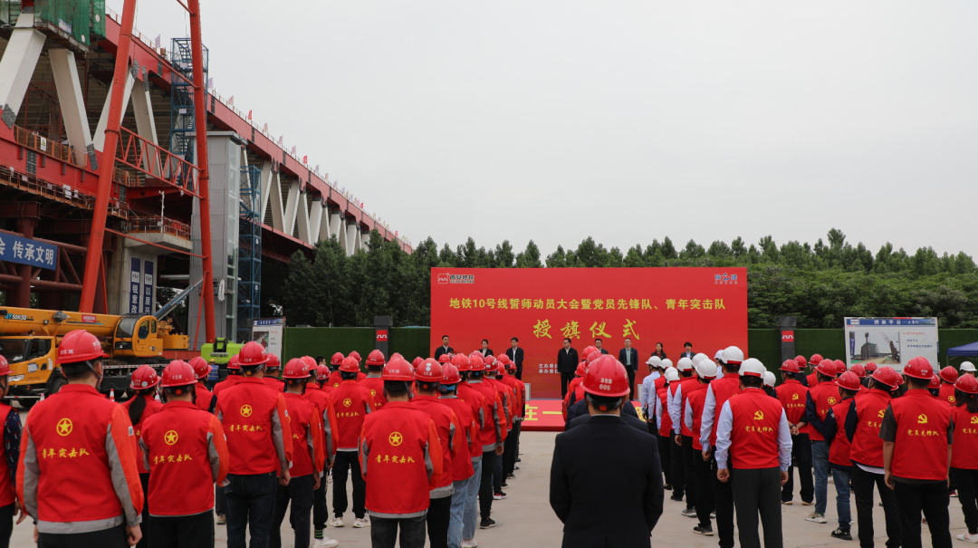 为扎实开展学习贯彻习近平新时代中国特色社会主义思想主题教育,对标省委省政府“三个年”决策部署和西安市“北跨”战略,扎实推进地铁10号线项目建设,5月5日下午,市轨道集团在渭河公轨合建桥北岸顶推平台举行了地铁10号线誓师动员大会暨党员先锋队、青年突击队授旗仪式。团市委、市轨道集团、陕建集团股份公司相关领导出席启动仪式,来自市轨道集团及参建单位的三支党员先锋队、三支青年突击队共计100名党员、青年代表参加仪式。