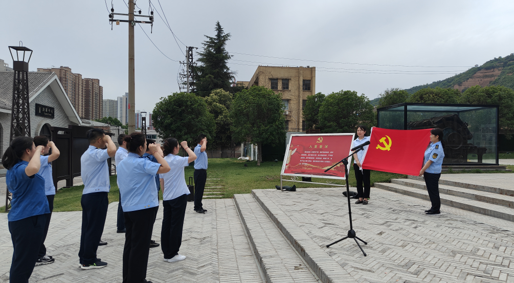在长乐塬抗战工业遗址,在讲解员带领下,党员们先后参观了窑洞车间、薄壳车间等工业遗址,通过讲解员的解说、参照实物、照片以及文献,充分了解了长乐塬抗战工业遗址是国内现存保留最完整的抗战工业遗址,感受了申新纱厂的工人在抗战时期那个战火纷飞的年代,仍坚持生产支持前线的艰难历程及工人们用满腔热血和坚强意志将长乐塬地区从一片荒地逐步发展为秦宝十里工业区的光辉历史,见证了民族企业家实业救国的历史,诞生了伟大的民族工业精神。党员们深深体会到老一辈抗战勇士艰苦奋斗、英勇无畏的革命精神,由衷的感到敬佩,集体面向党旗,重温了入党誓词,向党再次作出了庄重承诺。