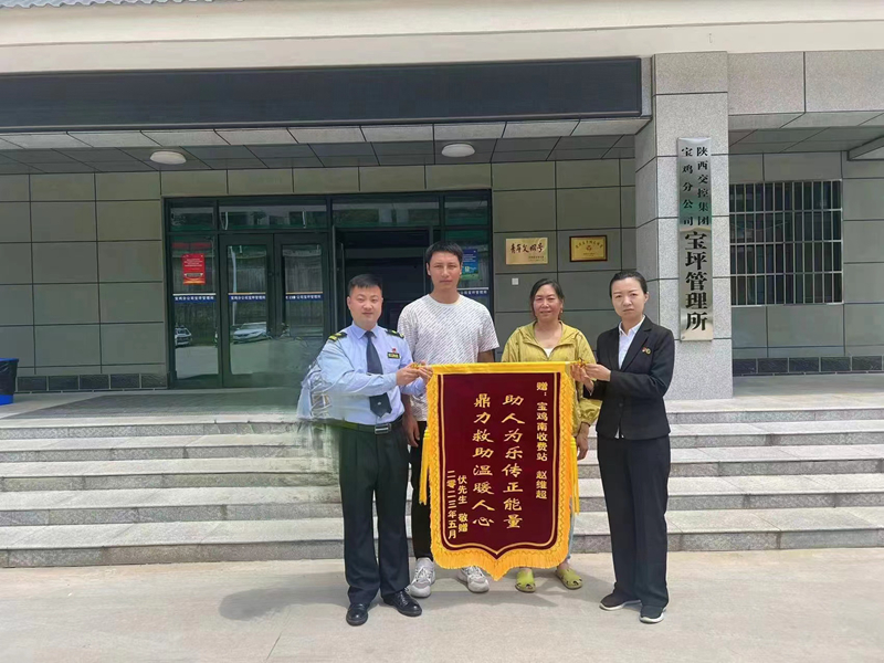 6月8日,司乘伏某为陕西交控宝鸡分公司宝坪管理所宝鸡南收费站送去一面“助人为乐传正能量 鼎立救助温暖人心”的锦旗。原来,5月20日司机伏某驾车载着全家行驶至宝鸡南收费站时,妻子突发疾病导致浑身无力、全身瘫软,孩子也高烧不退,在收费站广场停车后不知所措。当班班长赵维超了解情况后,立刻上报值班站长并拨打120急救中心电话,在做好事件突发区域安全防护后,与伏某一起采取急救措施,使伏某妻子孩子的病情和情绪暂时得到控制和安抚。随后赵维超又与伏某一同前往医院,帮助他安顿妻儿入院治疗,令伏某十分感动。