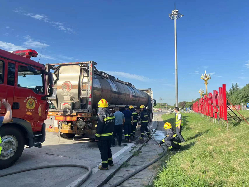 《国企》杂志融媒陕西讯(邵晓斌 南维) 7月10日,陕西交控西渭分公司华州收费站工作人员及时帮助轮胎自燃的油罐车进行灭火,及时消除险情,受到司乘好评。