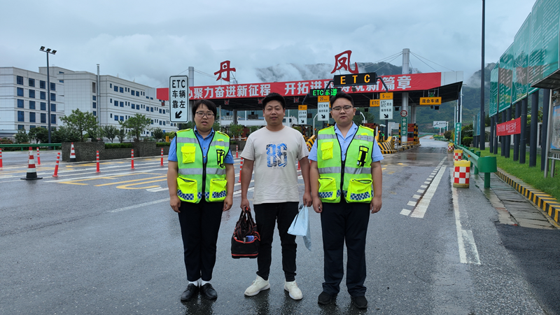 7月12日,司机张师傅来到丹凤收费站,送来一面“爱心亲如家人 善心真诚服务“的锦旗,表达对收费站员工拾金不昧行为的感谢。