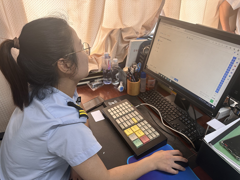 三是提升实操技能。从特情操作、车牌输入、清点纸币三方面着手,以国内90辆车500秒的最快记录为目标,熟练掌握键盘分布,牢记各类车型操作流程,以及对可能出现的各类突发状况进行预设推演,同时进行盲打车牌输入练习,做到“人键合一”,确保车道操作“稳、准、快”,无差错。