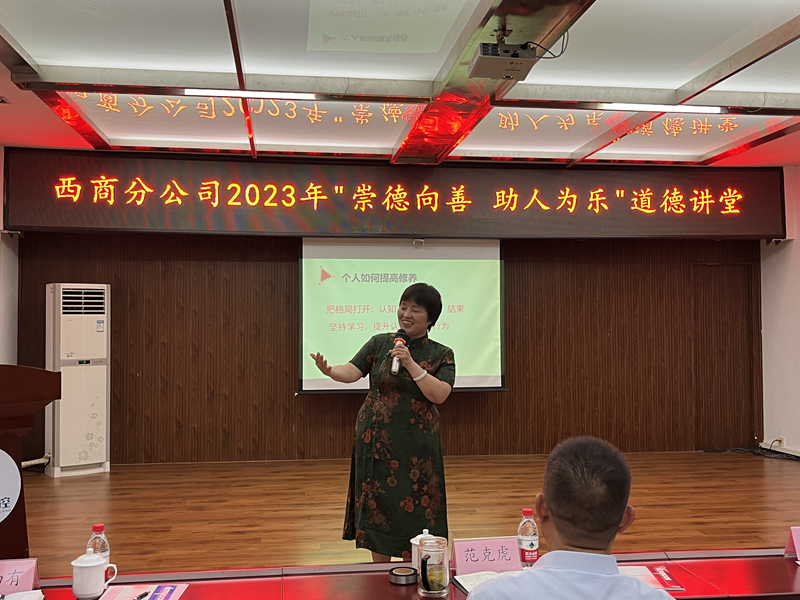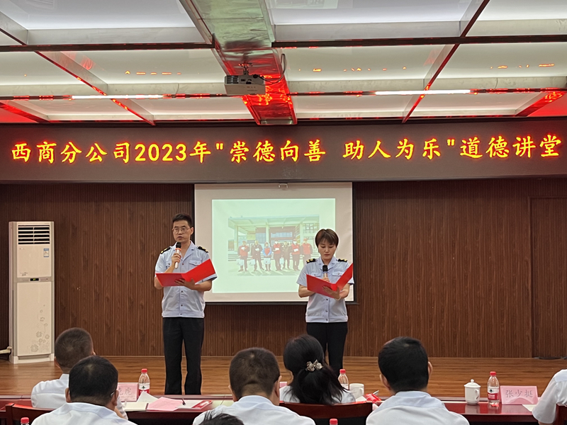 本次道德讲堂通过身边人讲身边事的形式,进一步增强了道德讲堂的吸引力和感染力,弘扬了中华民族传统美德,对西商分公司提升精神文明建设水平,提高职工崇德向善、无私奉献的道德品质具有积极的推动作用。