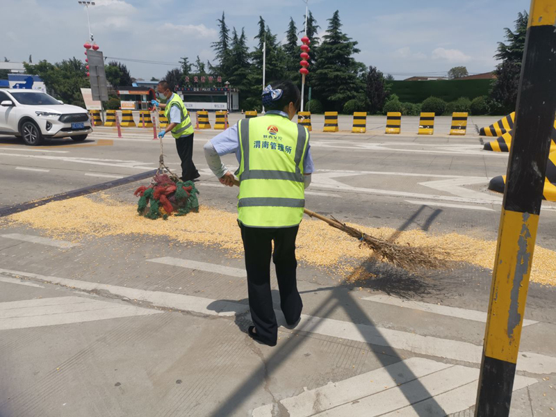《国企》杂志融媒陕西讯(李开峰) 7月26日13时许,一辆陕牌4轴货车在驶入渭南东收费站内广场时因货物装载不规范导致大量玉米粒沿路洒落,当班班长发现后随即引导该车停至安全地带,并组织员工快速对广场内及车道洒落的玉米进行清理,同时第一时间联系安全路产中队巡查人员,对该车行驶路线是否存在玉米粒抛洒进行排查,半小时后,在收费站员工与司机的共同努力下,散落的玉米粒装载完成并进行了加固,随后当班班长对其进行了安全教育,告知其抛洒物遗撒路面存在严重的安全隐患,极易引发交通事故,拉运易抛洒物一定要做好加固防止遗撒,司机对自己的错误行为表达歉意后,并表示今后一定规范拉运。