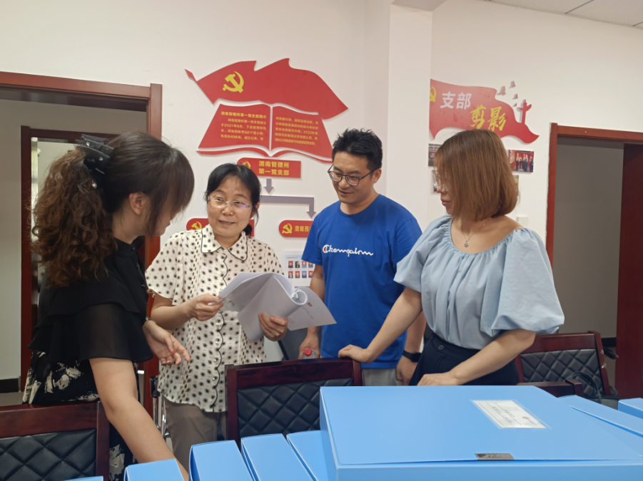 辛书记一行先后在渭南管理所高塘收费站、渭南西收费站实地查看了渭南所第二、第一党支部党员活动阵地建设和内业资料整理情况。在渭南所第一党支部党员活动室,听取了党支部上半年重点工作开展情况、党建融入业务工作成效以及“三化”建设推进情况,严格对照“三化”党支部的“六强”目标、“六项”制度、“六条”标准、“六有”阵地、“六个”台账、“六深”结合等六大标准对内业资料进行了细致检查,着重对三会一课、主题党日、廉政教育以及党建融入中心等资料的规范化以及标准化整理提出了宝贵意见,对渭南所第一党支部在“三化”建设工作的推进的速度和完成质量给与了充分肯定。