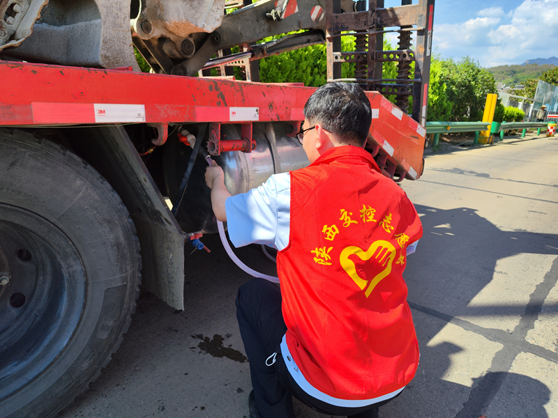 当天下午15时左右,丹凤收费站入口驶来一辆二轴货车,车辆停稳后,司机韩师傅便急切询问窗口人员哪里能够给货车加水,了解司机困难后,工作人员立即通知了站上的志愿者,志愿者们迅速行动将车辆引导至安全区域,利用站上自来水管不到10分钟便帮助韩师傅将车辆水箱加满。