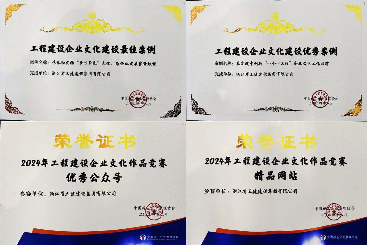 打造三建特色文化。新搭建“10+X”总体宣传架构,采取固定专题+特色专题相结合方式,持续讲好三建故事,在中国工人日报、中国新闻网、杭州发布等媒体发表140余篇次。进一步丰富“步步争先”文化内涵,完善文化展厅内容,设立“争先奋斗者”“争先青力量”“争先匠力量”等栏目,弘扬争先精神。获评中施企协企业文化最佳案例、优秀案例各1项,网站获精品成果、公众号获优秀成果;获省级职工书屋1个。宣讲案例获全省优秀案例展评比赛铜奖;宣讲员获市建委“优秀宣讲员”称号。