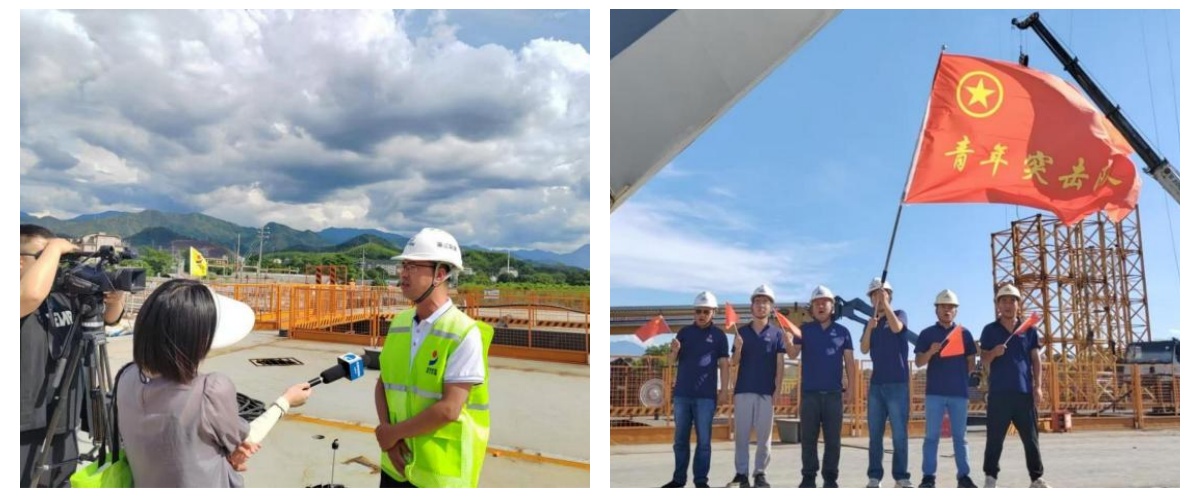 项目党支部依托红色工地创建,坚持以“党建 + 生产建设”为抓手,推动党建工作与施工生产深度融合、同频共振。以党员先锋队和青年突击队为基,项目党员和青年带头扎根现场,将“红色风帆”稳稳插在施工一线。为保证建设稳步推进,“党员先锋队员”“青年突击队员”主动放弃轮休,带领全体人员担当作为、苦干实干,他们无畏烈日炙烤,不惧黑夜漫长,面对特大洪汛毫不退缩,攻克一个又一个的难题,完成一个又一个“小节点”,最终提前半年完成项目主体工程建设,获得良好项目效益。同时,项目党支部积极配合业主单位落实安全文明施工各项要求,结合安全晨会、安全隐患排查、应急演练、安全生产知识培训等活动,提高工人安全意识及施工知识,项目工程质量安全和文明施工管理水平不断提升。项目建设期间,中国蓝新闻、丽水之干、龙泉发布、龙泉旅游等媒体多次对项目进行采访报道,在当地树立起良好项目形象,更为项目助力区域高质量发展注入了强劲动力。