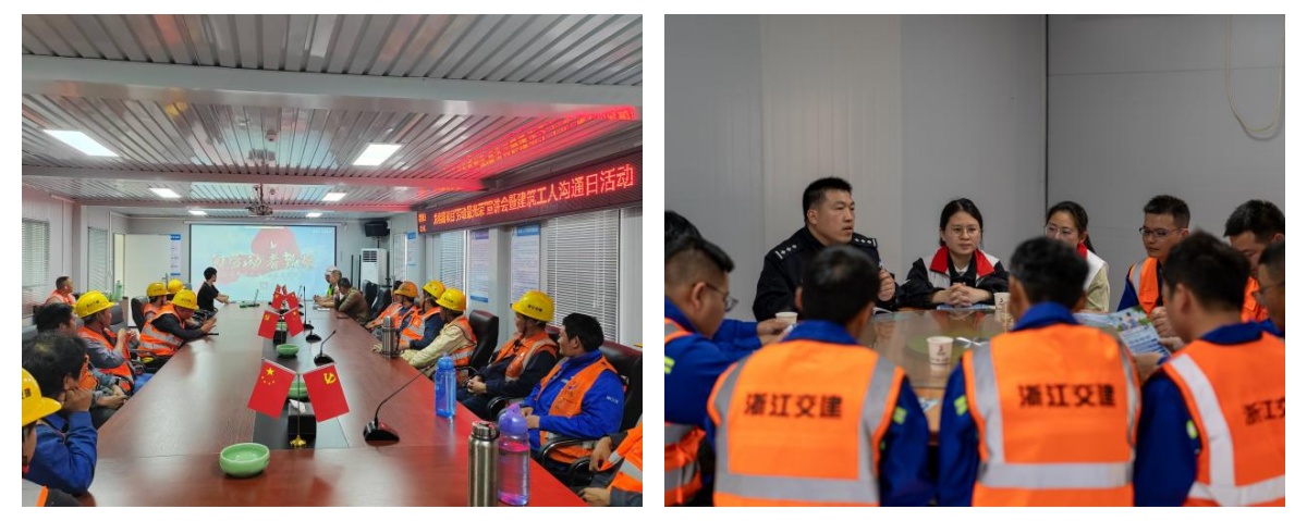 项目党支部充分发挥党建引领作用,以“党建 + 人文关怀”为切入点,启动“红心”关怀活动。一方面,项目党支部高度重视“五小”设施建设,定期开展节日慰问、义诊进项目、“建筑工人沟通日”等活动,深入职工生活,倾听一线心声,面对面、实打实帮助工友解决“急难愁盼”问题,实现矛盾化解关口前移,积极构建和谐企业,架设起与职工群众的连心桥。另一方面,面对项目施工场地紧邻生活区的特殊情况,项目党支部多次召开工作会议,精心组织筹划,由党员牵头,依据实际情况建立计划台账,明确责任到人、具体到事,通过有效调整工序、优化工具设备、规范人工实操、实时监测噪声和粉尘、提前公示相关信息、搭建共建联系平台等举措,以党建为纽带,积极融入当地社区,拉近与街道、村委及周边各方主体的沟通距离,建立多方联建交流群,主动倾听各方意见,提前预判问题,积极整改落实,有效减少施工对附近居民生活的干扰,共同推进项目顺利建设。同时,项目团队热心参与公益事业,在文明城市创建等方面积极作为,赢得了周边居民及上级单位的高度认可,为推动区域共建共富贡献了力量。