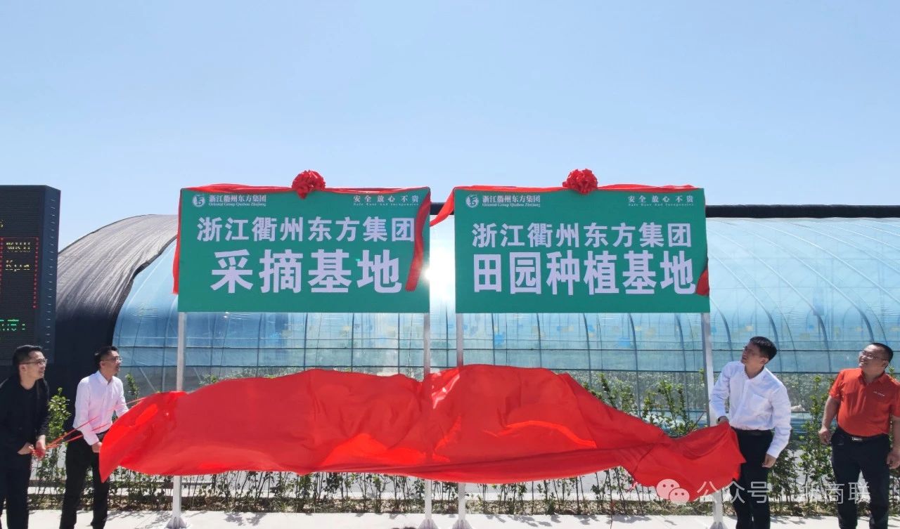 签约仪式后,双方举行了采摘、种植合作基地揭牌仪式。2023年,物产中大融租联合寿光市政府、衢江区政府、柯城区政府共同出资1.2亿元成立了之江农业,旨在全面引入“寿光模式”实现“北菜南种”。衢州东方集团作为衢州市商贸龙头企业,拥有10家连锁酒店、10座购物中心、50 家连锁超市、7 家大型菜市场,服务近200家企事业单位食堂。此次挂牌柯城园区采摘、种植基地,双方强强联合,将进一步整合各自优势资源,通过组织会员采摘、参观研学等个性化活动深入服务C端客户群体。