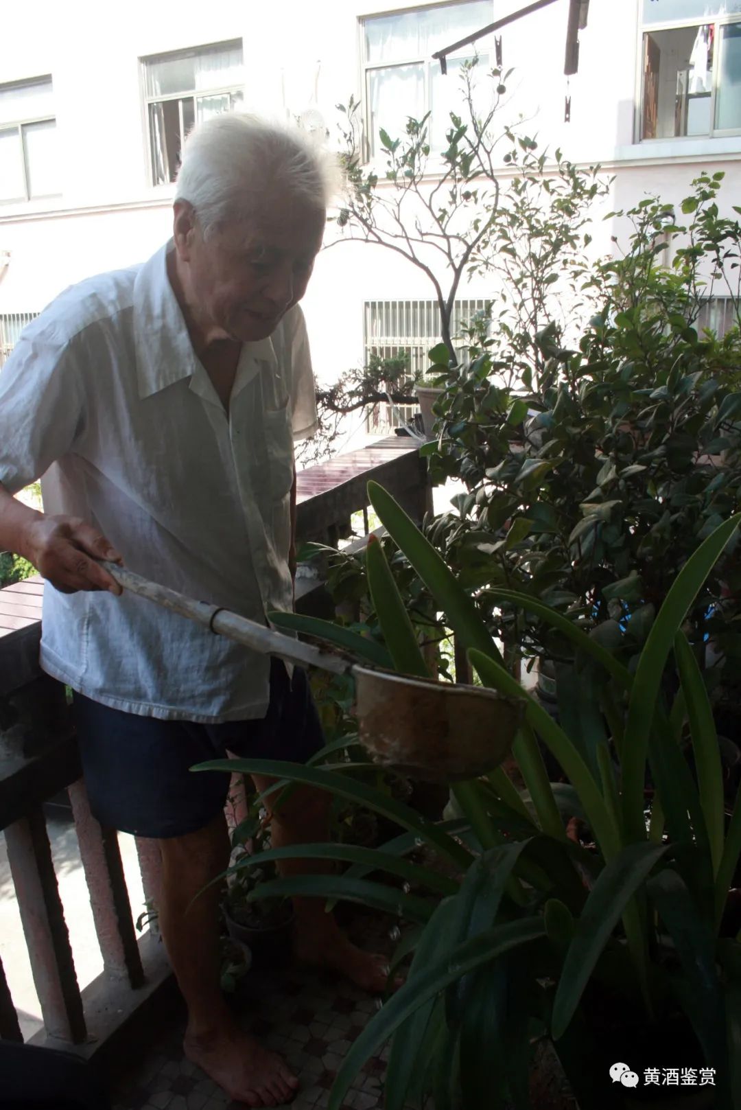 2012年7月30日,笔者陪同记者采访王阿牛,在家里的阳台上浇花