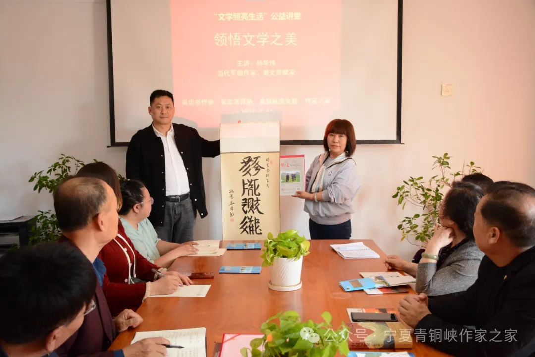 《国企》杂志融媒浙江讯(党建好故事 江 风)4月11日,在第28个世界读书日即将来临之际,由宁夏吴忠市作协、评协,青铜峡市文联、青铜峡作家之家联合举办的“文学照亮生活”公益讲座暨“享阅读之乐·品文字芬芳”读书分享会在作家之家圆满举办。培训课采取线上线下两种方式同步展开,知名军旅作家、散文辞赋家、《国普网》常务总编、《华文月刊》副社长孙华伟先生受邀担任主讲嘉宾。中国作协会员、吴忠市文联副主席(不驻会)、吴忠市作家协会主席包作军,《吴忠文学》执行编辑马晓燕,青铜峡市文联秘书长、《古峡文学》副主编陈靖等16位本土作家及来自银川、中宁、吴忠的文学爱好者近50人参加。中国作协会员、吴忠市评论家协会主席、青铜峡作家之家负责人鲁兴华主持。