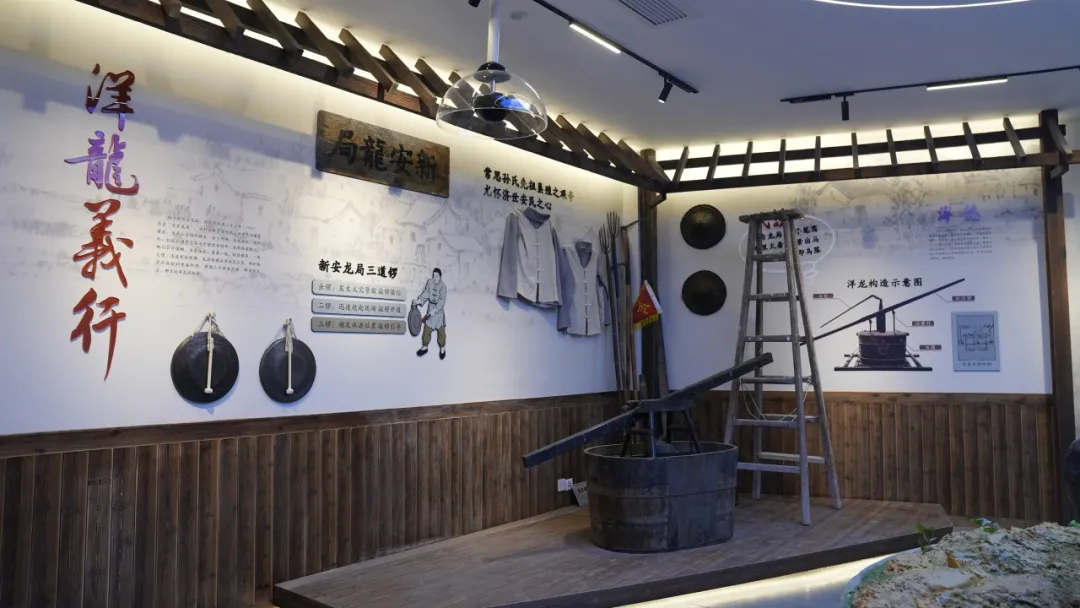 这一部分的场馆可以分为历史发源、洋龙义行、三永初心、事业发轫四大板块。孙家桥的居民遵循“守国法 敦孝悌 力耕读 崇勤俭 存忠厚 禁赌博 戒戏谑 恤贫穷 睦亲邻 教子孙”的孙氏家训,辛勤创造,不断拼搏,使用“牛车盘头”汲水装置等先进农作工具提高粮食产量,自发成立“新安龙局”救火志愿队守护家乡平安,创办金泰家塾、新安小学等教育机构,把知识播种给居民。同时劳动人民创办的印染厂、豆腐坊、人民公社修建服务队(宝业集团前身)等工厂,也为杨汛桥经济事业发展支起飞翔之翅。