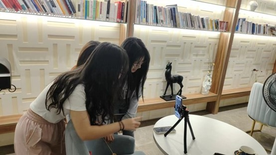 为了改变这个局面,激发课堂活力,近年来浙江机电职业技术学院海宁校区做了很多尝试。每年都尝试推出一个校企合作项目来丰富新媒体课堂内容,在真项目中提升同学们的专业能力。2022年浙江机电职业技术学院海宁校区和浙江电视台中国蓝主播学院共同打造了“第二季中国蓝主播孵化营”,2023年参与了阿里巴巴国际站英文直播大赛。今年学校数字商贸学院和全球知名品牌、世界500强企业美的合作,联合校团委、校学工部推出了“美的生活遇见美的TA”校园创意短视频大赛,通过“真项目、真平台、真产品、真数据”的“四真”模式,以竞争形式激发同学们的创作热情及灵感,通过良性竞争的优势循环,将课程教育融入比赛中、牵出课堂外,延伸更多的可能性。