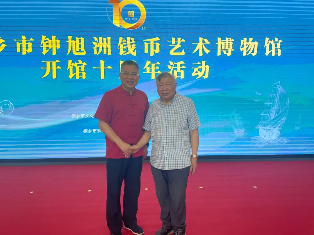 在开馆十周年之际,钟老心系桑梓,再为博物馆增添藏品,捐赠钱币、青铜器、书画等6件套,其中南宋绍兴通宝楷书折十对读试铸样钱更是孤品大珍。本次庆典活动上,钟老的新作《桑梓情·钟旭洲自传》首发。当日下午,还举办了“丝绸之路”钱币文化学术座谈会,国内外多位钱币专家学者进行交流研讨。