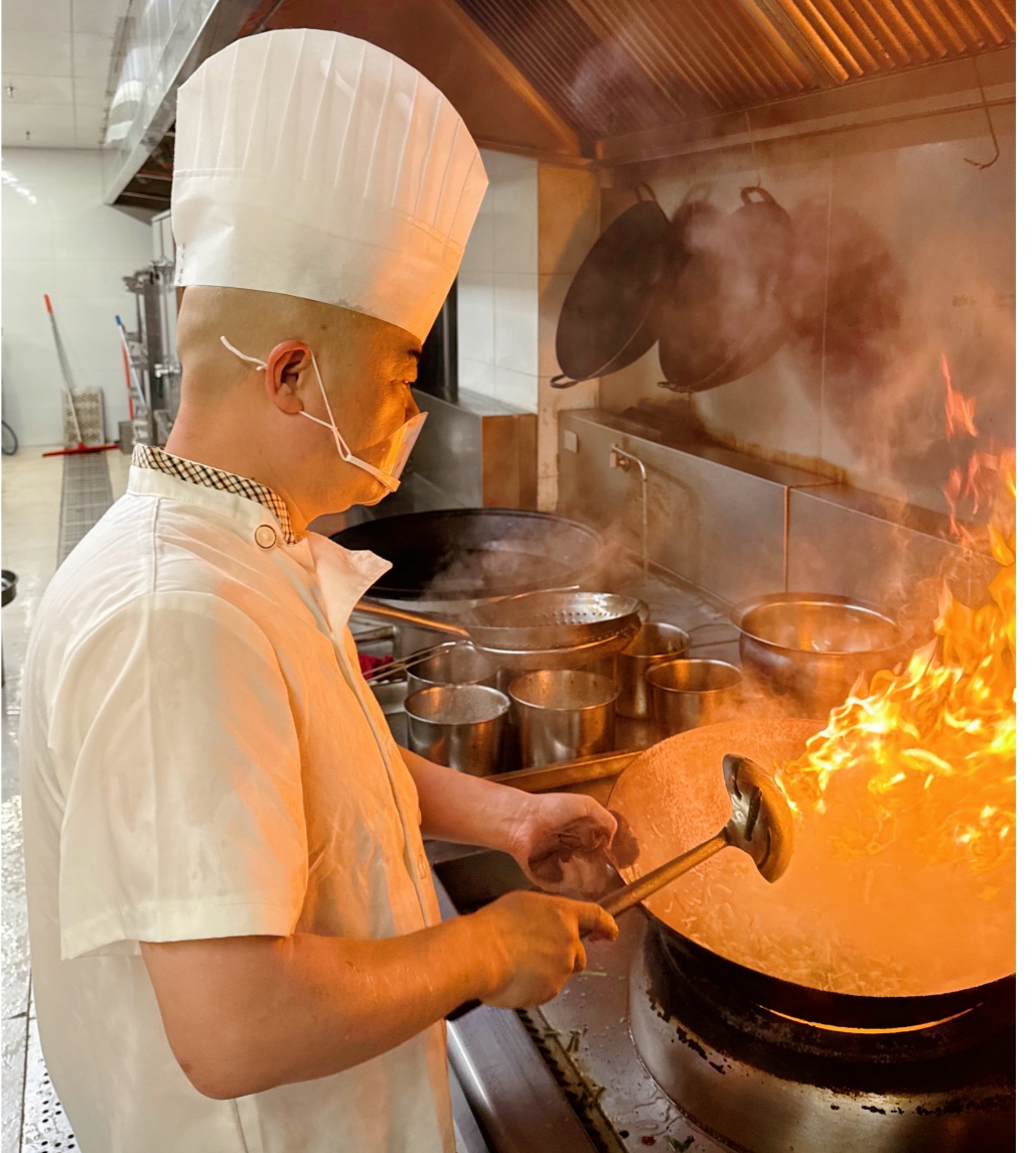 在建投大厦食堂项目,食堂工作人员在40多度的高温环境中,每天坚守数小时,为员工烹制美食。他们用辛勤的付出,确保每一位员工都能在炎炎夏日中享受到美味的饭菜。