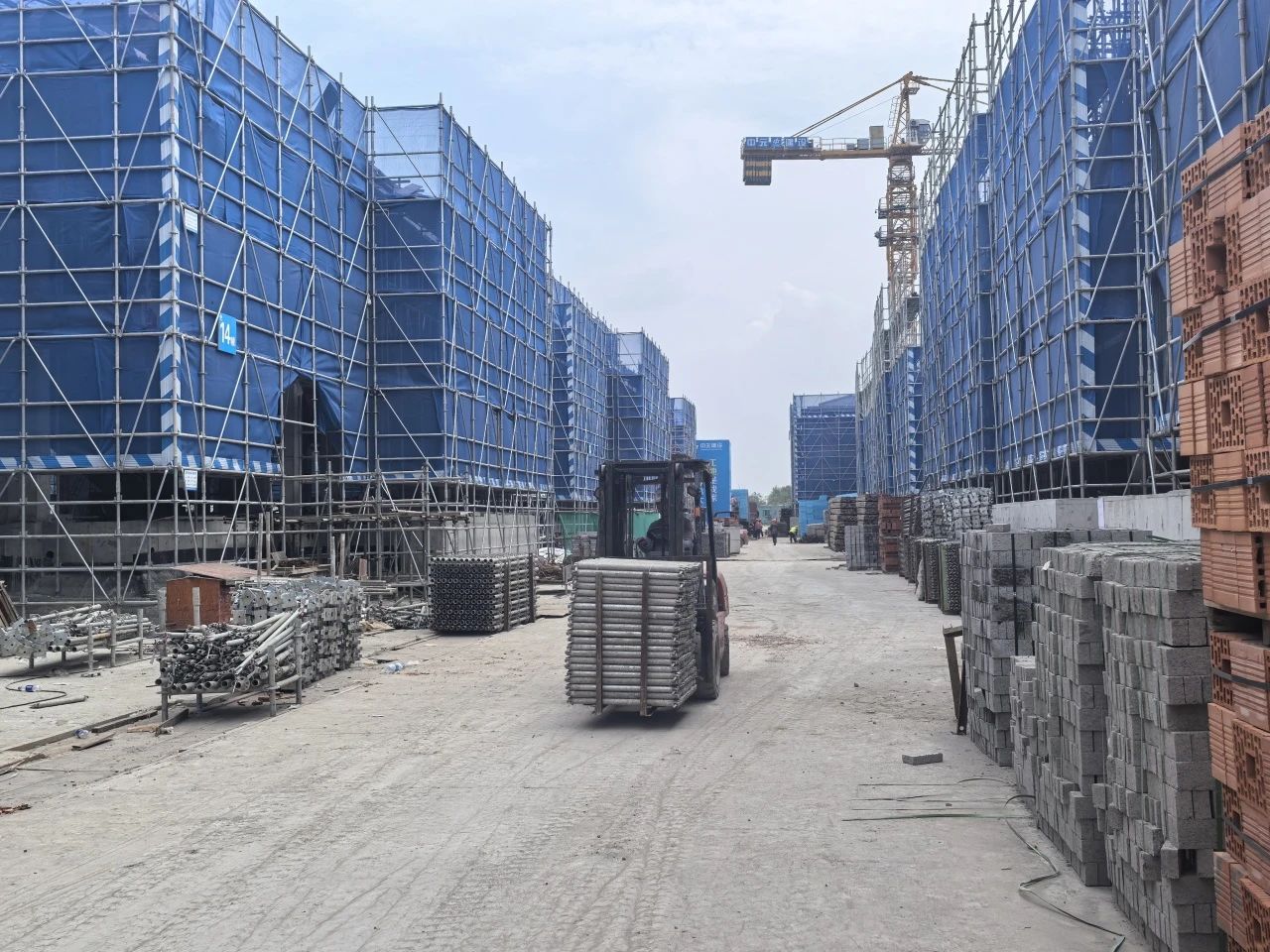 面对区域住宅同质化、生态融合度低等痛点,项目团队以“六干争先”为导向,用“专业团队 + 市场化机制”破局。从立体庭院设计到公建化立面打造,从钢结构悬挑工艺创新到预制构件应用,每一处细节都透着对“好房子”标准的执着。高温下的弹性作业制、茶水亭里的防暑物资,彰显着项目对建设者的关怀;红黄蓝预警机制与第三方飞检,则筑牢了品质防线,将“安全、舒适、绿色、智慧”的居住愿景,一点点钉进南湖区湘家荡的沃土中。
